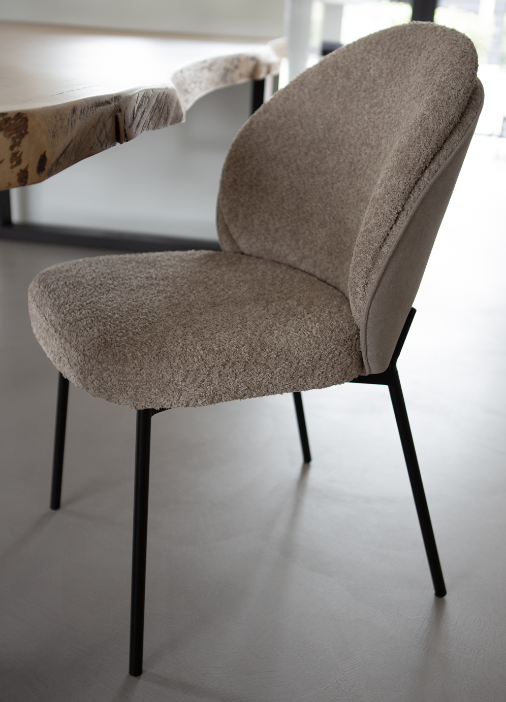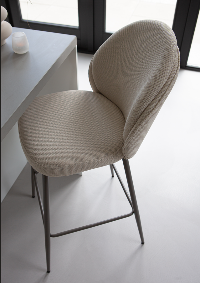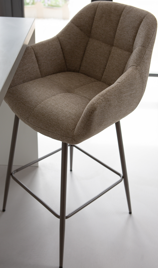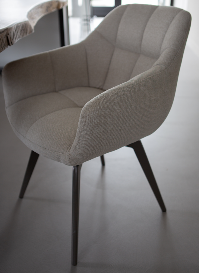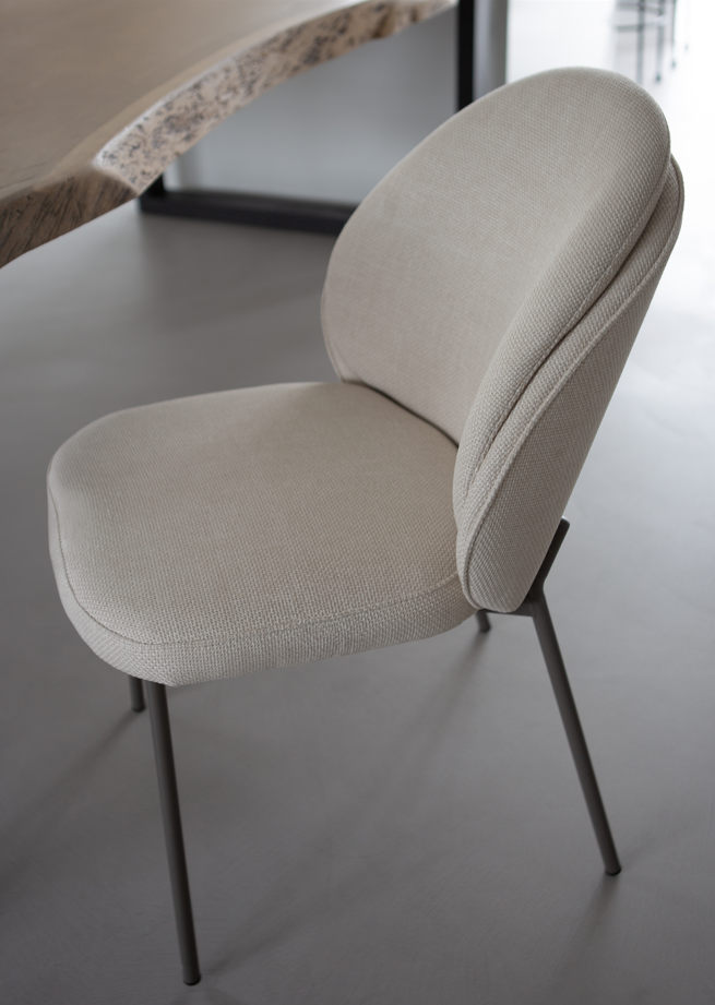 Het onderstel van de stoelen is gemaakt van metaal in een mooie taupe of zwarte kleur. De stoffen in natuurlijke kleuren matchen mooi bij het onderstel.